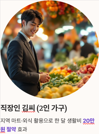 신청 후 지역 마트·외식에 활용 → 한 달 생활비 20만 원 절약 효과